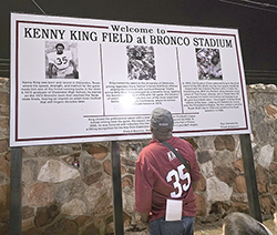 Maroon letters now spell out “Kenny King Field” on the grass of Bronco Stadium, but the man who put Clarendon on the map with two Super Bowl championships says the honor is not solely his – it belongs to the community.